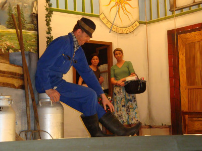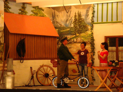 Bühnenbilder: 7 (Hofraum der Familie Häberle, auf dem Acker, Proberaum Gesangverein, Fußballplatz mit Tribüne, vor einer Diskothek, vor der Kirche)