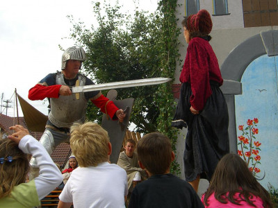 Mehrmals an diesem Tag kam der Einakter „Die alte Mär von Minne und Mord“, eine Persiflage aufs Mittelalter, zur Aufführung.