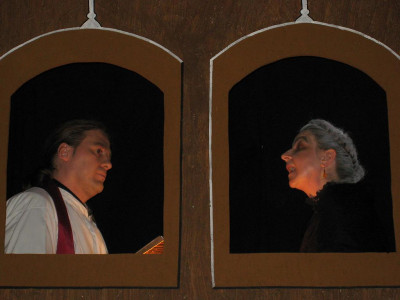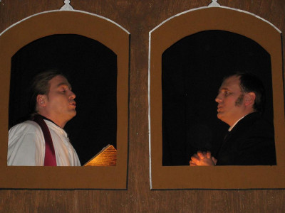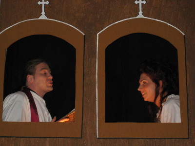 Bühnenbilder: 3 (Freie Landschaft, Sakristei, Beichtstuhl)