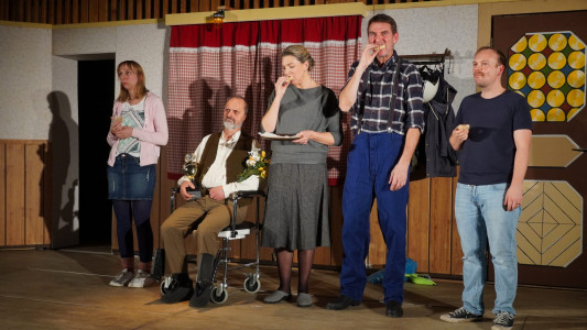Ein Bauernhof in Oberschwaben, in der Ferne grüßt der Bussen, die Kühe stehen im Stall, der Opa feiert hochbetagt seinen Geburtstag, sogar einen Hoferben gibt es. Die heile Welt auf der Bühne? So scheint es zunächst. Doch das Leben der Familie Holzer ist in Wirklichkeit weder einfach noch harmonisch. Also muss sich etwas ändern. Ein Plan muss her, und die Dinge nehmen ihren ungewohnten Lauf.