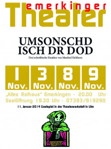 Baden-Württemberg wird vertreten durch die Theatergruppe Emerkingen mit dem Stück: Umsonschd isch dr Dod von Manfred Eichorn. Es spielen Yvonne Kopp und Roland Röller.