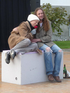 Bei zwei Wohnsitzlosen, die sich Gedanken machen, was der Winter bringen wird, wo es doch schon so „herbstelet“, im Seniorenheim zwischen Geburtstagstorte und Blumenstrauß und bei zwei, die „nicht mehr da aber auch noch nicht ganz weg sind“. Er ist Erlösung, letzte Aufgabe und wer weiß, vielleicht der Anfang von etwas ganz Neuem.
